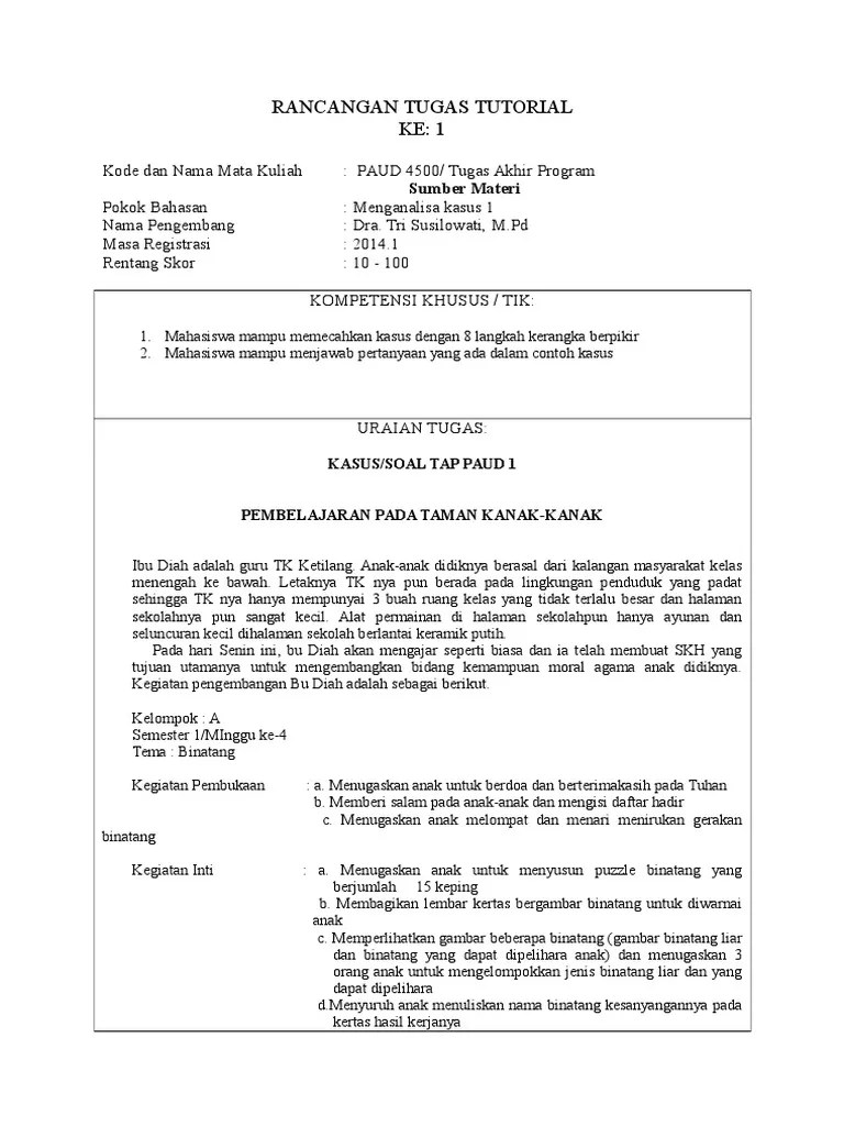 Contoh soal tap ut pgpaud paud4500 tugas akhir program disertai kunci jawaban. Mahasiswa mampu menjawab pertanyaan yang ada dalam contoh kasus. Contoh soal tap s1 pgsd ut informasi pendidikan pdf document. Contoh soal tap ut pgpaud tugas akhir program nah berikut ini kami . Download soal ut lm ut latihan mandiri ut soal pgsd soal pgpaud soal ut .